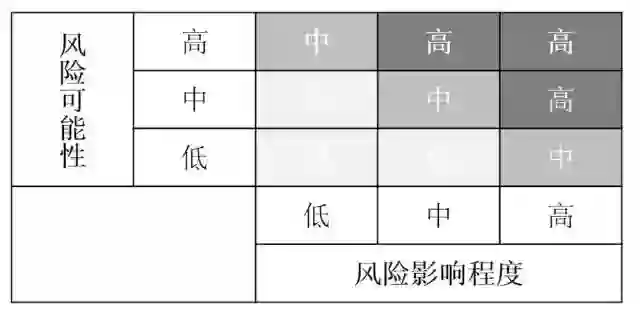 风险发生的可能性:可分为高(>60%)、中(30%-60%)、低(<30%)三个等级。