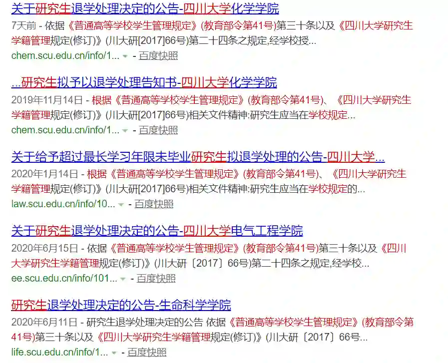 近日,四川大学化学学院、法学院、电气工程学院、生命科学学院、经济学院等多个学院相继在官网向学生发出正式退学通知,要求学生在2周内办理离校手续。