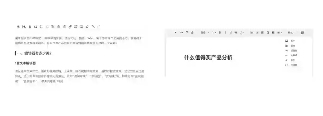 满足高阶编辑样式,对于深度的编辑用户用上markdown编辑器简直是如虎添翼。但学习需要一定成本,不同网站具体的markdown语法还不一样,但输出效果是一致的,其次markdown语法在中文输入上没有想象的那么便利,你需要不断在中英文间进行切换,这对英文来说具有先天优势,但对中文,确实体验一般。如“人人都是产品经理”、“石墨文档”等等。以及我的个人网站的文章都是由markdown编辑器渲染出来。