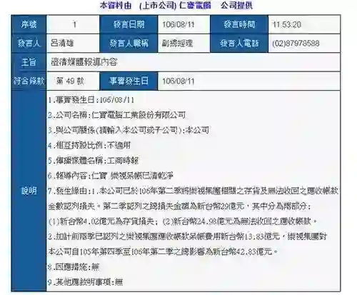 其最新财报显示,受乐视欠款影响,仁宝电脑上半年合并净利 15.25 亿新台币,归属于母公司净利 13.28 亿新台币,比去年同期大减 60%。