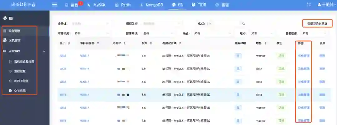 早期Elasticsearch分布在58内的各个业务部门自主维护,但是随着Elasticsearch自身的功能加强,各业务团队使用Elasticsearch的数量越来越多、使用的业务场景越来越重要,于是由数据库部门对整个公司的Elasticsearch使用进行了收敛管理,在这个过程中数据库部门同学遇到了很多问题和挑战,具体如下:业务使用场景复杂多样;Elasticsearch版本不统一;应用与Elasticsearch数据服务混合部署;缺乏有效监控;服务器硬件型号多样;索引接入无管控,找不到负责人;接入规范不统一,接入沟通成本高;无平台管理,手动excel维护集群信息。