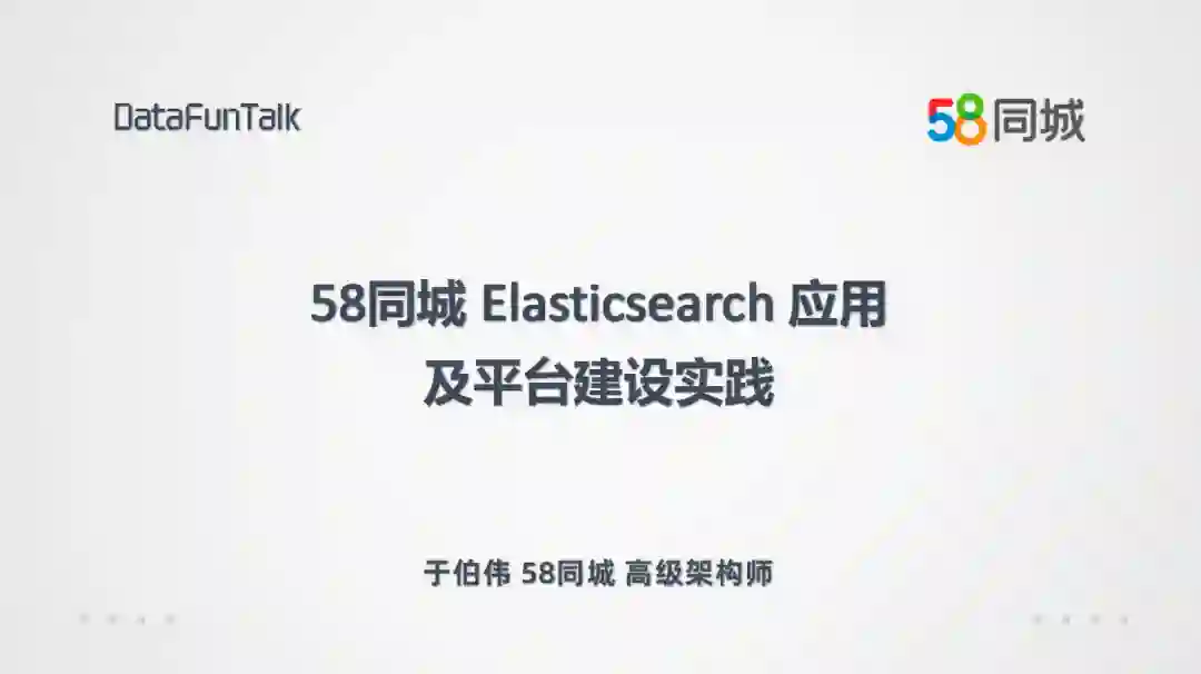 本次分享的主题为58同城Elasticsearch应用及平台建设实践。主要内容包括: