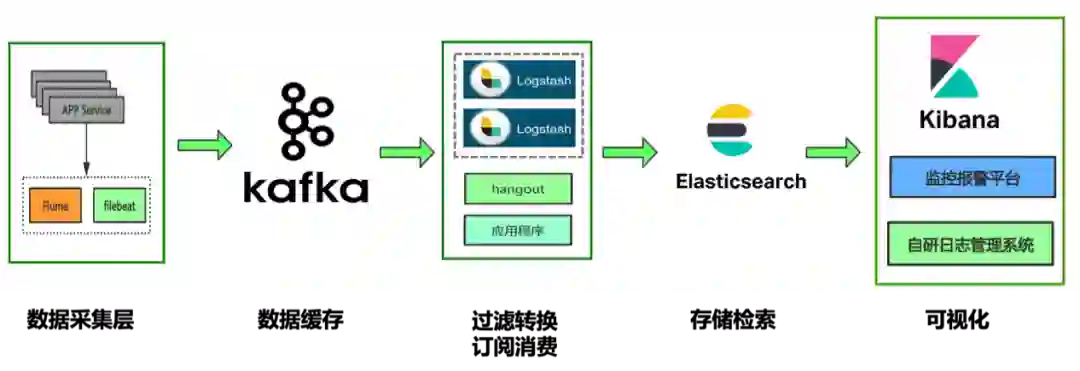 收集:在数据抓取层除了使用Flume之外,我们增加了Filebeat等套件。