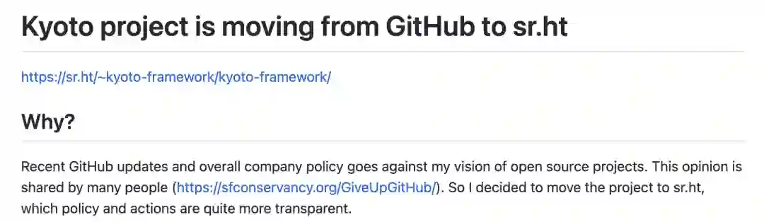 他表示,要把Kyoto project将从GitHub转移到sr.ht。
