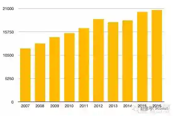 2007年至2016年临床试验数量