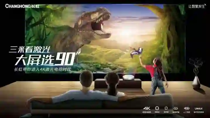 基于以上原因,长虹在激光电视时代到来前,率先喊出“三米看激光,大屏选90”的革命性口号。
