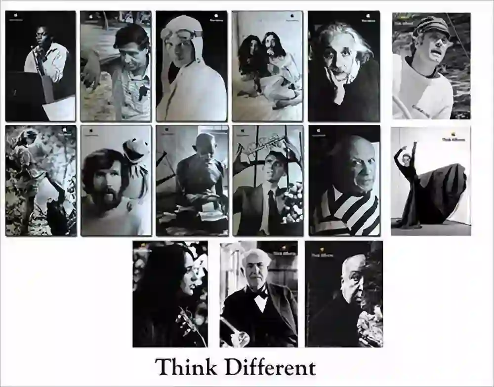苹果在1997年,发布《Think Different》系列广告,致敬那些「相信自己的探索能改变世界的狂人」。