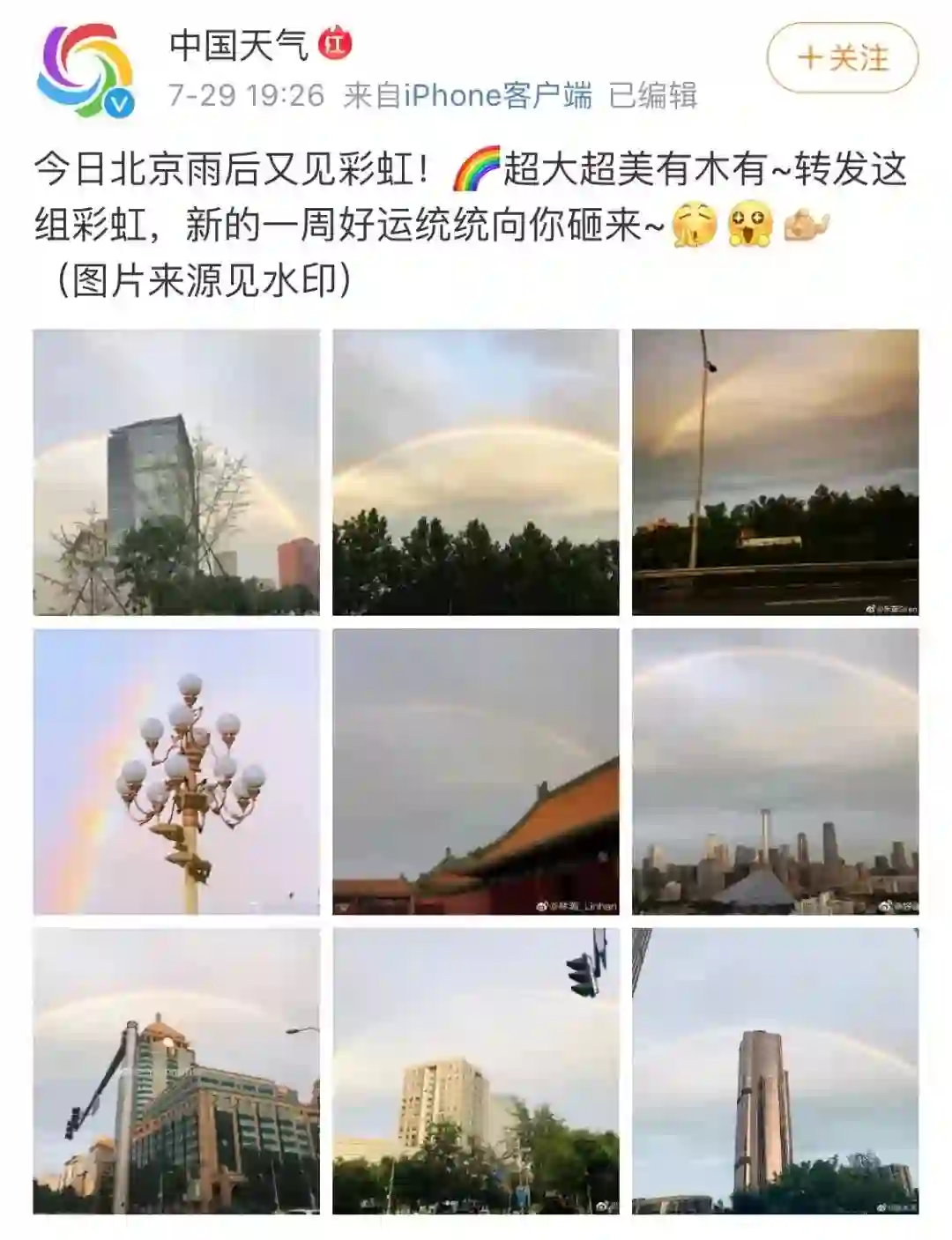 大家都纷纷发出自己拍到的彩虹