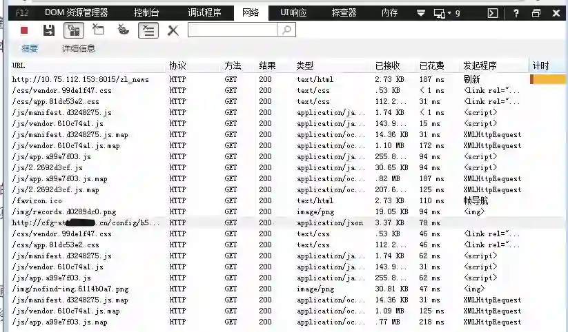 写好了代码, 在 IE9 中, 网络请求非常诡异, 经常不行: 请求只持续了不到 1ms, 并且接收数据为 0B, 没有状态码; 但是在少数时候是可以成功请求并获取数据的.
