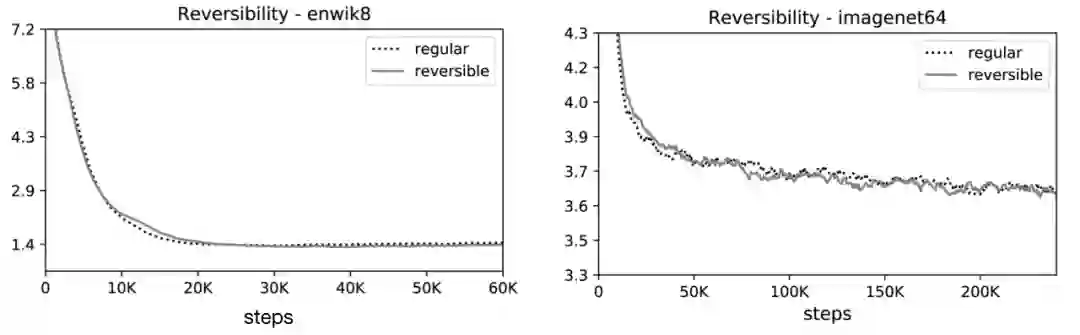 🎉可逆Transformer匹配基准:他们的实验结果表明,可逆的Transformer 可以节省内存不牺牲精度: