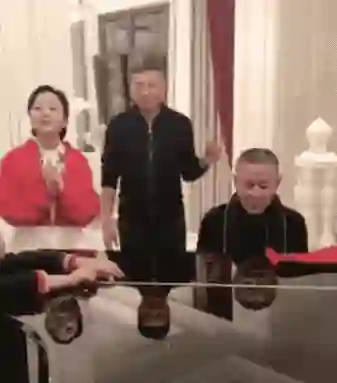 视频中,女歌唱家张燕唱起了《绒花》,陈道明则弹起钢琴来伴奏。