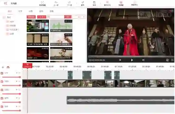 素材裁剪与精编可以对音视频进行:裁剪与拼接、转场特效、文字处理、模板定制、滤镜处理、调色处理等操作。
