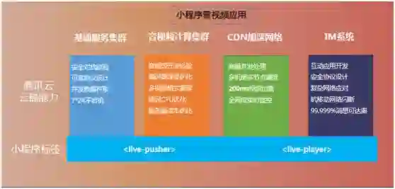 腾讯云提供底层音视频组件,助力微信生态。有了腾讯云的小程序解决方案,客户不用考虑整个音视频的处理技术,只需集中精力完成业务部分。