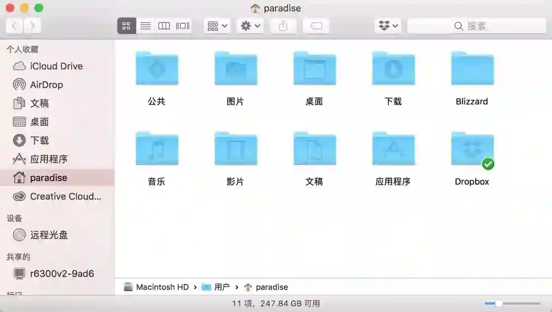 macOS 中的资源管理器是 Finder,由于沿用了 Unix 的文件系统,在 macOS 中并没有 C 盘,D 盘,而是用不同的文件夹来区分不同的用途。每个 macOS 的用户都会有一个自己的用户目录,里面一般包含公共、图片、下载、桌面、文稿等文件夹。你可以将文件分类存放在这些文件夹中,也可以自己建立新的文件夹来存放。