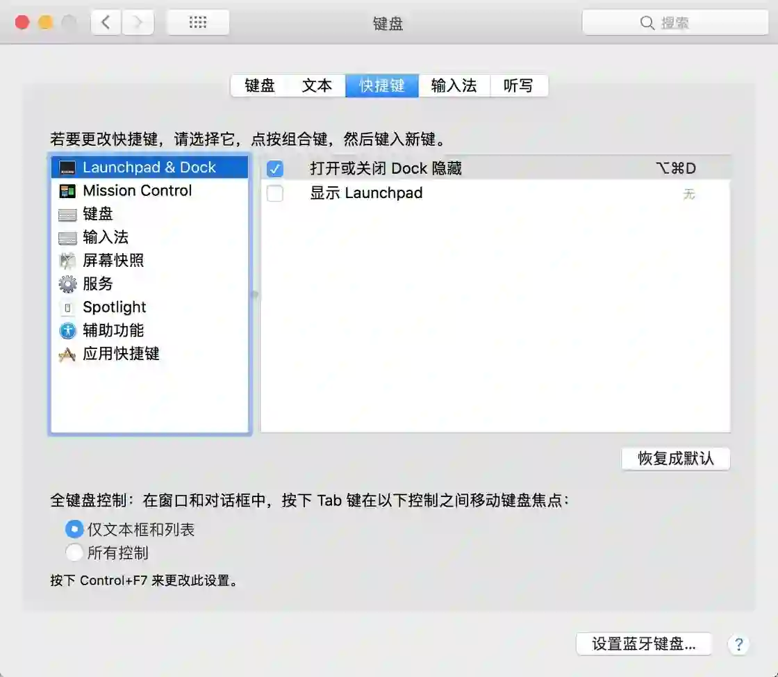 当然,快捷键还有很多,也可以自己进行设置,可以进入「系统偏好设置 - 键盘」,在快捷键 tab 下进行设置。
