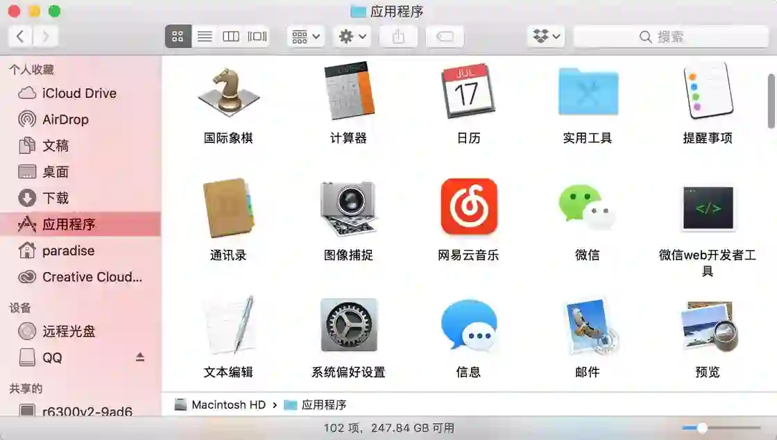Finder 中应用程序文件夹