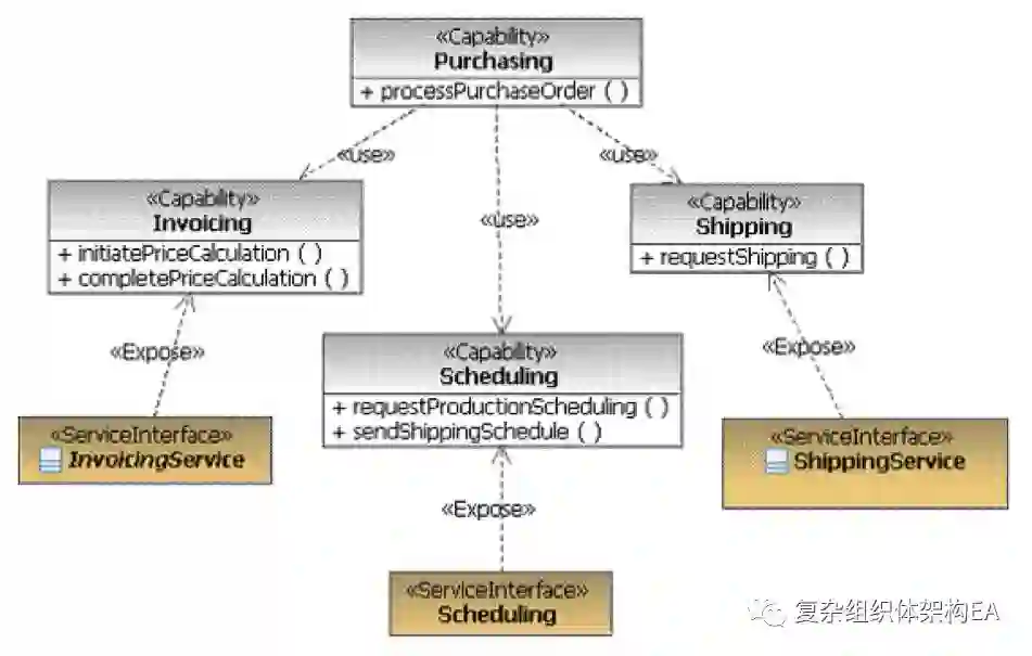 该组织可以叫做服务模型的控制性组织。可以使用视角包来记录组织相同模型元素的其他方式,例如使用 SOMA 方法。