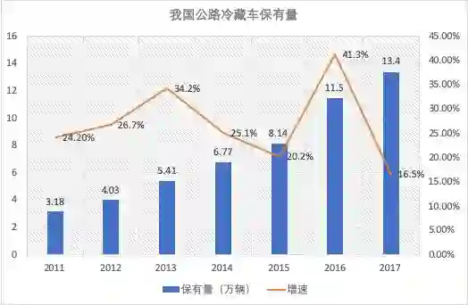 据中物联冷链委统计,2017年全国冷藏车总量预计达到13.4万量,全年增加1.9万辆。而在2018年上半年,就增加了1.82万量。按照日本、美国人口与冷藏车数量的配备来看,中国冷藏车数量方面还有近百万级的增长空间。
