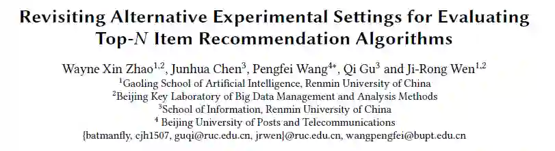 [2]Wayne Xin Zhao, Junhua Chen, Pengfei Wang, Qi Gu, and Ji-Rong Wen. Revisiting Alternative Experimental Settings for Evaluating Top-N Item Recommendation Algorithms. In CIKM ’20: The 29th ACM International Conference on Information and Knowledge Management, Virtual Event, Ireland, October 19-23, 2020, Mathieu d’Aquin, Stefan Dietze, Claudia Hauff, Edward Curry, and Philippe Cudré-Mauroux (Eds.). ACM, 2329–2332.