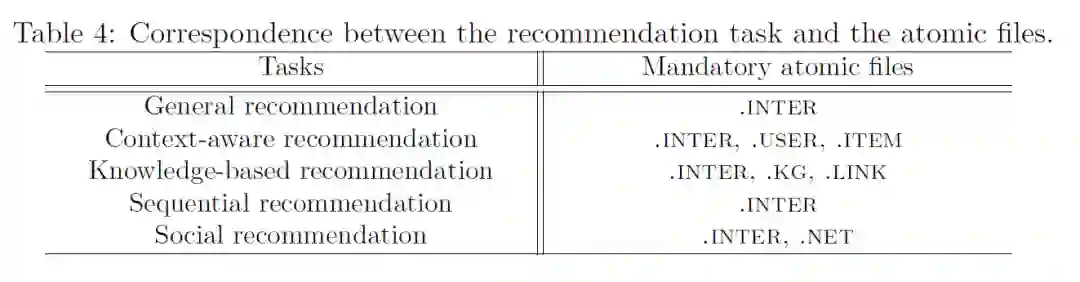 目前研究中最火的5种推荐场景均可以采用上述的数据结构和存储格式进行适配(Social recommendation将于近期支持),本框架可以自动根据模型类别选择相应的数据文件,用户也可以开发新的组合方式,实现属于自己的独特推荐模型。