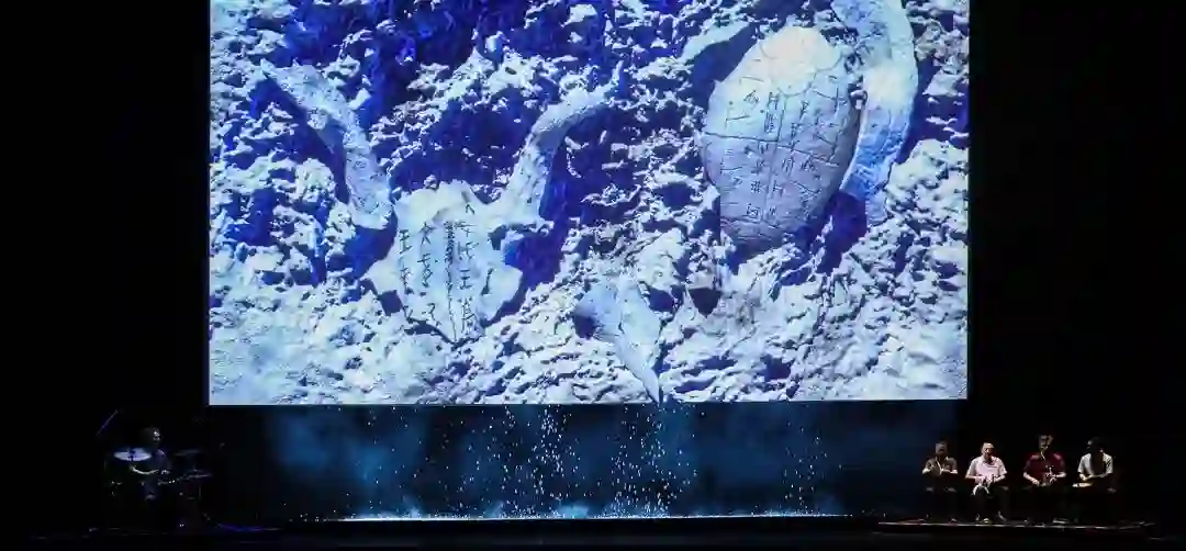 在《对话·寓言》的最终呈现中,让我最受震撼的是《彝腔·海》。云南人李怀秀一声长吟攫取了所有观众的注意力,她的声线中有蛊惑人心的穿透力,正如舞台背景中大片蓝色海洋铺天盖地的力量。古老的唱腔很难听懂,但它正是传统与未来之间对话的传声筒。此时我已经忘记要去探究背后的科技原理,只一味沉浸在两种力量的交织当中。它在克制地警示,环境正在被污染,未来的人类命运是否乐观?答案或许是肯定的,它像表演尾声处的倒带场景,一切还原到了初始的洁净状态,这是张艺谋的观点,也是一场美好的希冀。
