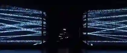Architecture Social Club团队使用两台25瓦Kvant品牌、四台30瓦八通品牌全彩激光器在三维空间内从三个角度进行光束投射,并使其立体成像在由6000条特殊材质纤维构成的矩阵装置内,使每个角度可视的成像效果不同。