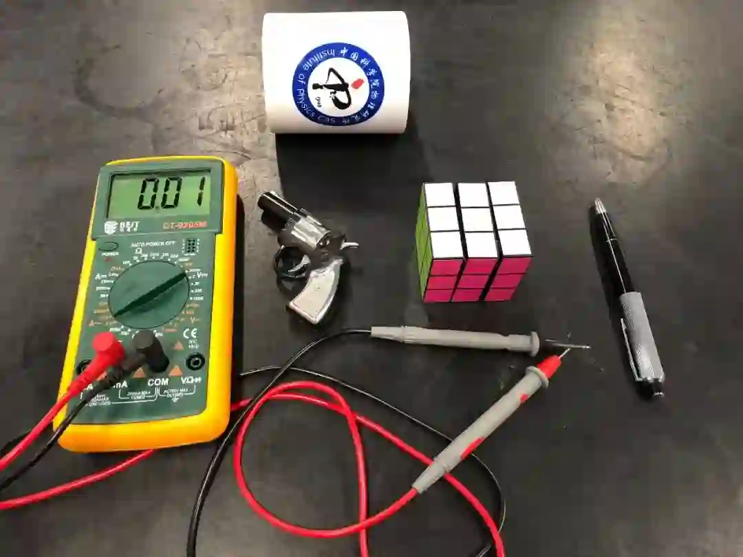 实验器材:圆珠笔,魔方,打火机,万用表,所标杯