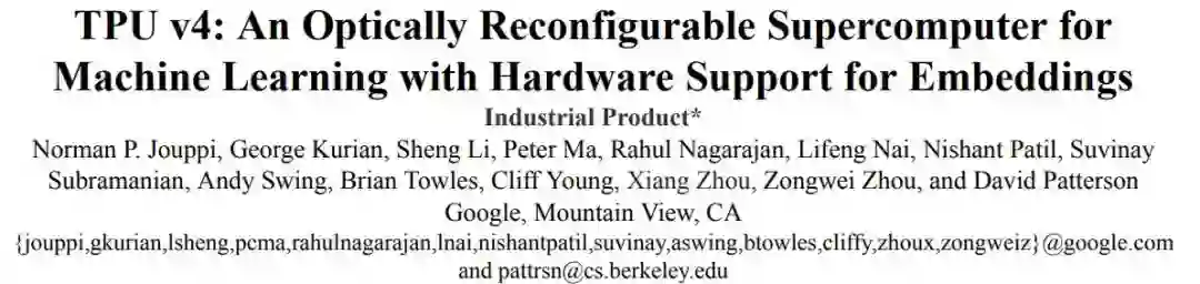 如今 TPU 已经发展到了第四代,谷歌本周二由 Norman Jouppi、大卫・帕特森等人发表的论文《 TPU v4: An Optically Reconfigurable Supercomputer for Machine Learning with Hardware Support for Embeddings 》详细介绍了自研的光通信器件是如何将 4000 多块芯片并联成为超级计算机,以提升整体效率的。