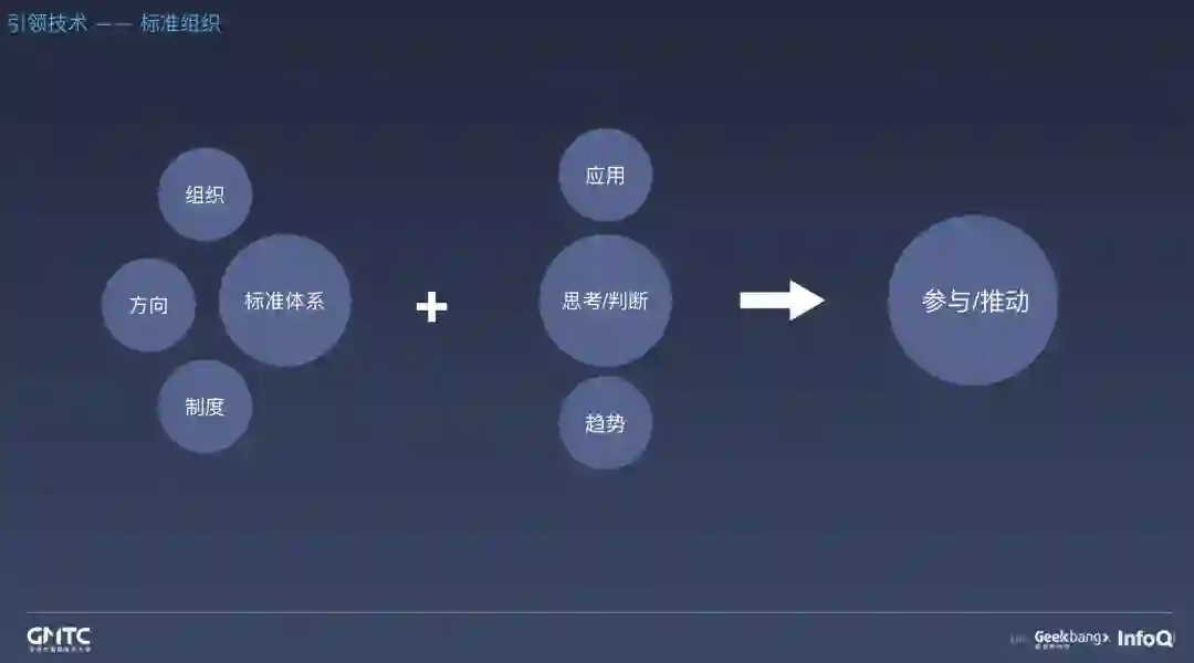 我们首先要了解标准组织是怎么样的?有什么样的方向?制度是什么样的?我要参与什么?不能参与什么?要了解怎么运转,加上我们的思考判断、对于未来趋势的判断,以及我们对于深度应用的判断,然后推动整个标准组织的完善。