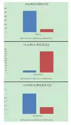 用FPGA完成JPEG格式图片转成HEVC格式图片,图片分辨率大小为1920x1080,FPGA处理延时相比CPU降低7倍,FPGA处理性能是CPU机器的10倍,FPGA机型单位性能成本是CPU机型的1/3(参见图10)。
