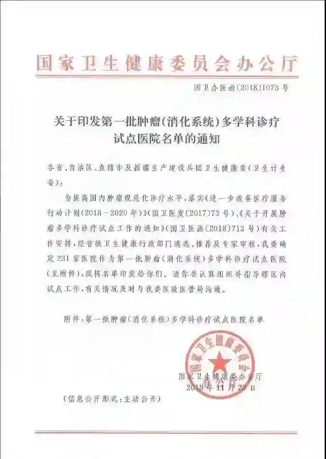 12月4日,国家卫生健康委员会公布了首批确定的231家医院肿瘤多学科诊疗试点医院。