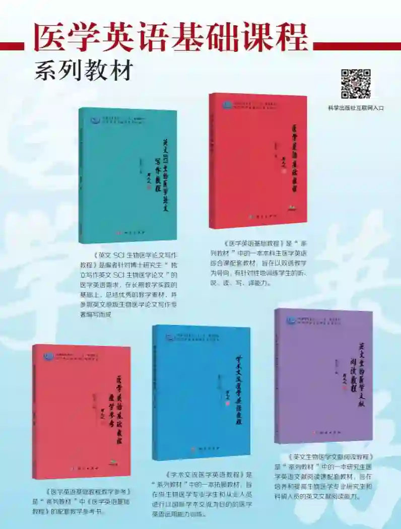 为方便各位老师分享、沟通、交流,“医学英语交流群”已建立,目前群内已满100人无法扫描进入,想进群的高校教师请加任俊红编辑微信,拉您入群。(添加时请务必备注学校+姓名+所授课程,仅限医学英语专业相关课程任课教师)