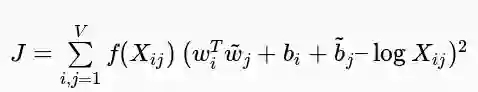 基于以上两点想法,Glove提出了一个加权最小二乘回归模型,输入为单词-上下文同时出现频次矩阵: