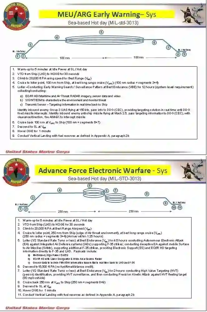 ●美海军陆战队在信息征询书中提出的预警任务、电子战任务剖面要求及说明(美海军陆战队图片)