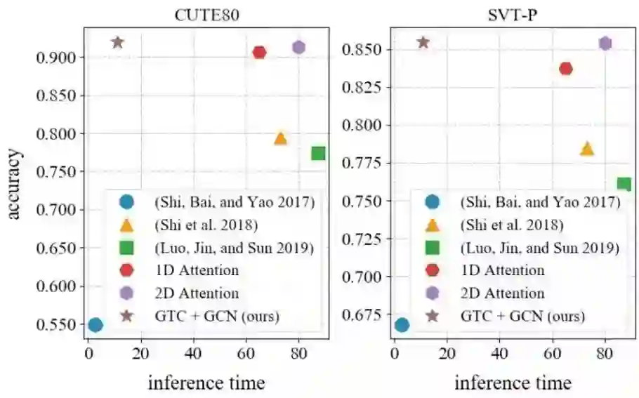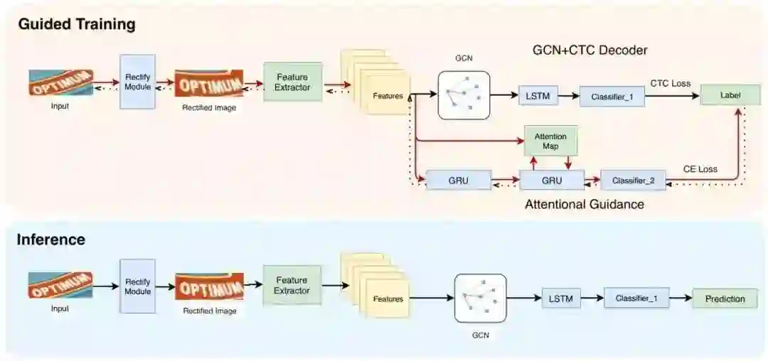 该论文针对场景文本识别,将CTC和Attention结合起来,提出了GTC(Guided Training of CTC)。同时,该工作还提出了一种图卷积网络(GCN)来学习特征的局部相关性。实验证明,该方法能有效提升CTC的识别性能,不仅达到了State-of-the-art的效果,而且相对基于Attention的方法有6倍的加速。