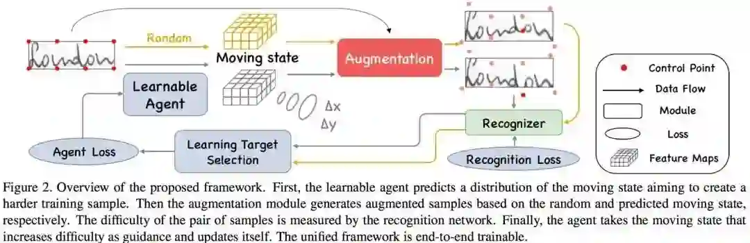 针对训练数据的几何多样性不足的问题,论文提出了一种面向文本行图像的几何增广方法,和简单的几何变换不同,这种方法可以丰富各个字符的几何多样性。论文进一步提出一种可学习的增广方式,联合识别器端到端训练,以提高识别器的泛化性能。这是针对文本行图像增广的初步探索,该问题仍然有很大的研究空间。