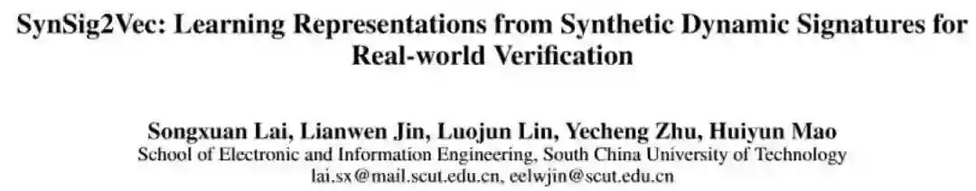 该论文针对联机签名认证任务中真实签名数据难以获取的难题,提出了一种基于书写运动学理论的签名合成方法,可以基于模板签名合成出不同形变程度的签名样本,并通过优化签名相似度排序的平均准确率(Average Precision,AP)指标进行特征学习,论文提出的SynSig2Vec方法在两个公开的联机签名认证数据集上比之前最好方法大幅度地降低了签名认证错误率。