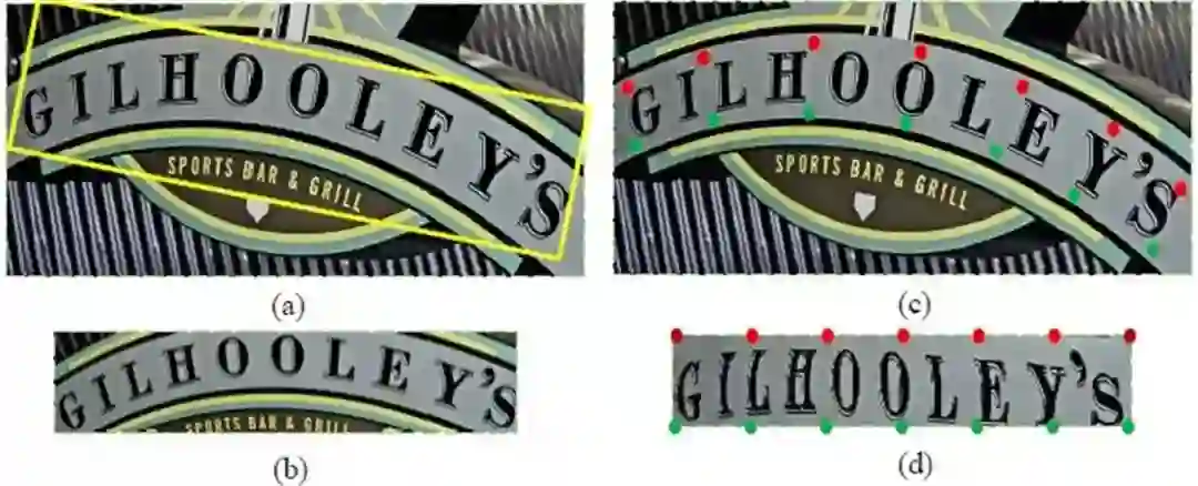 通过边界点,可以将任意形状的文本矫正为水平文本,有利于识别网络(图1(d));