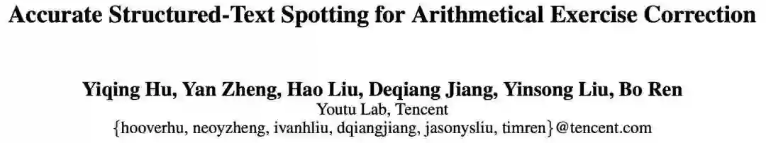 该论文提出了一个端到端的算术习题批改系统,包括检测、识别和评估三个模型。根据算术习题的三个特性,论文提出了基于现有模型的改进方法,取得了超越先前方法的结果。论文还发布了AEC-5k数据集,涵盖40种常见算术习题,共5300张图片。