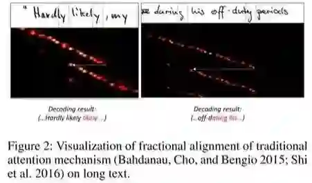 注意力机制是当前文本识别最先进的方法之一,其在场景文本识别任务上取得了尤为出色的效果。然而,当前注意力机制的对齐操作依赖于上一步的解码信息,这就导致了一旦上一步解码出错或具有迷惑性,注意力机制的对齐将产生错误,且此错误会累积传播。这一问题在较长的手写文本上体现得较为明显,如下图所示。