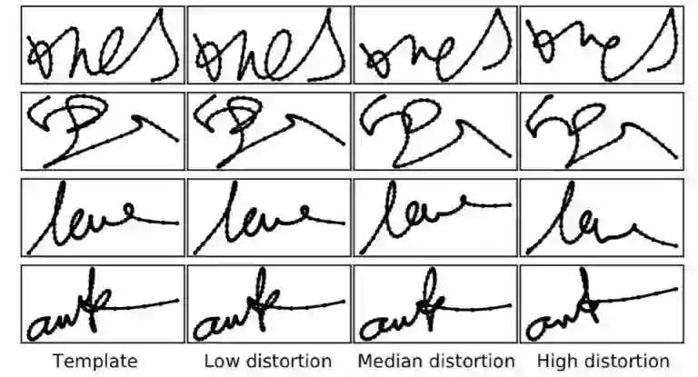 图1 针对给定模板签名生成的不同形变程度的合成签名