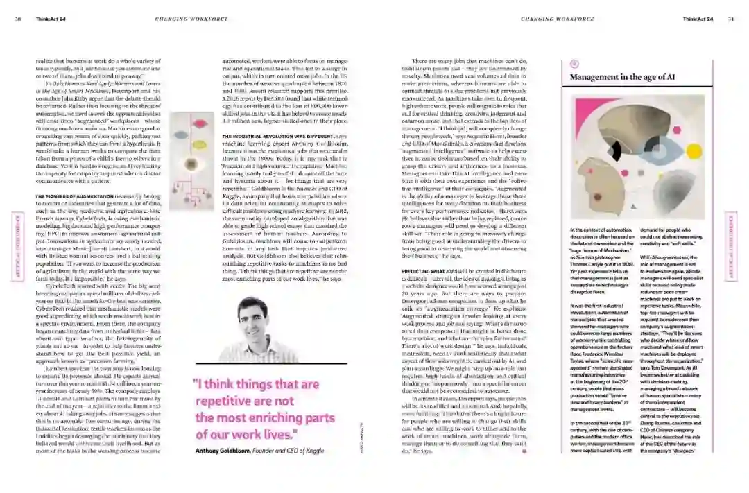 但是,也有很多工作是机器无法实现的。未来人类更多地从事需要批判性思维、创造力、判断力和尝试的工作。