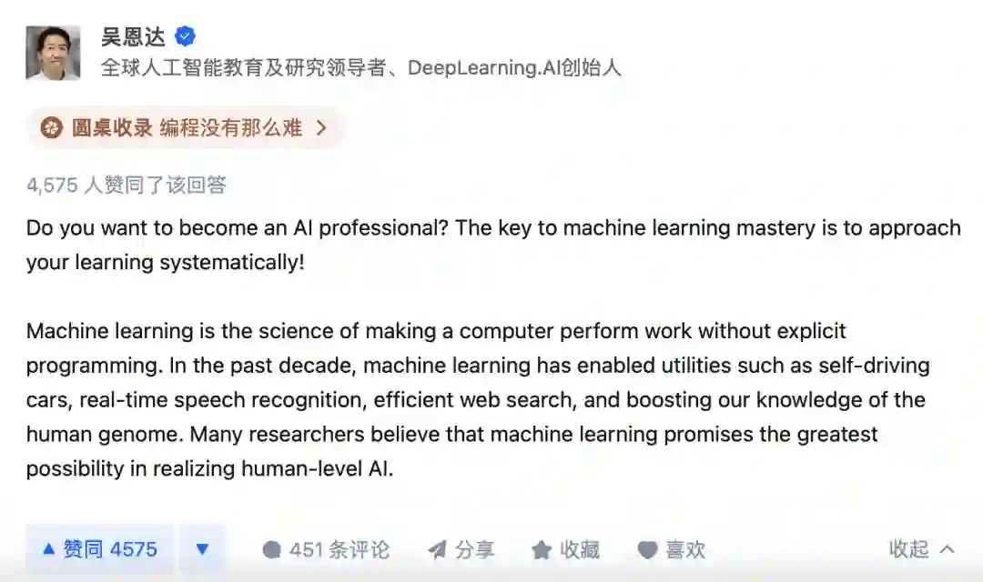 虽然卖萌酱已经不需要系统学习机器学习了,但无意间发现最高赞的id竟然叫“吴恩达”??