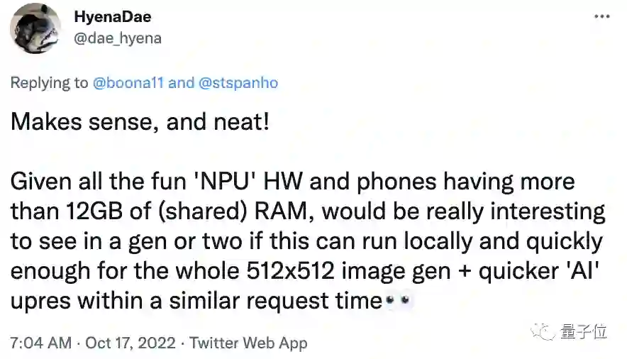 在这个前提下,如果Stable Diffusion和AR一起玩这个工作能在本地运行,并且能够快到在类似的请求时间内,完成整个512x512图像生成,并在更快的AI上运行升级,一定非常有趣。
