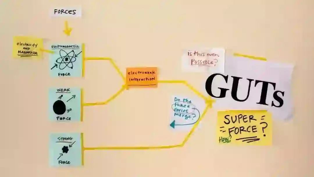 电弱力和强核力能够被统一吗?这样的一个理论被称为大统一理论(GUT)。(图片来源:Sandbox Studio)
