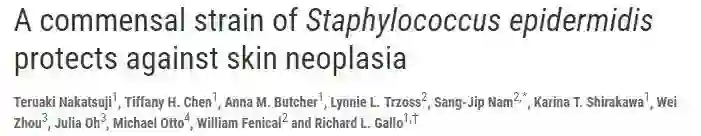 加州大学圣迭戈分校(University of California, San Diego)的 Richard L. Gallo 研究团队发表在 Science Advances 期刊的文章中表示,由人体皮肤上常见的表皮葡萄球菌分泌的一种物质,能够有效抑制肿瘤生长,有望成为预防皮肤癌的特效药。