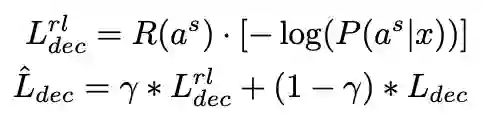 最后,由于最大化极大似然估计的目标对摘要等文本生成任务来说太过严格,可能会过度拟合,因此借鉴之前工作,我们将 ROUGE-L 作为另一个优化目标并利用强化学习对该目标进行优化,最终的学习目标是 MLE 和 ROUGE-L 的混合。