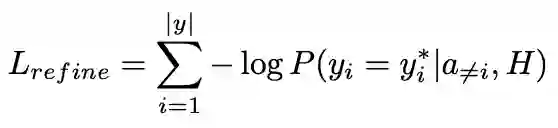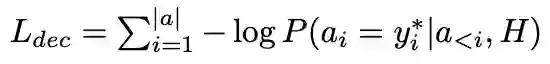 这一阶段解码器端并没有使用 BERT 产生上下文表示。该过程的损失函数定义为: