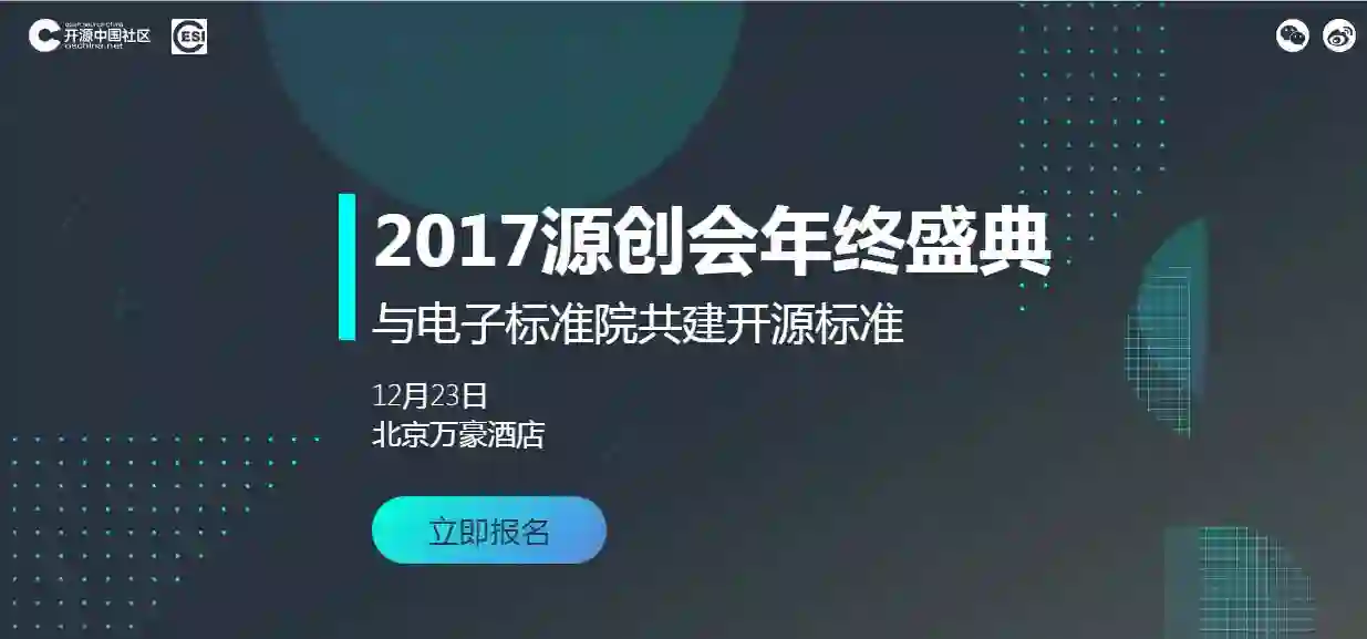 为促进中国开源生态完善,推广和传播开源技术,关注开源社区和开发者、关注开源软件和技术实践、关注前沿科技和技术新领域。由开源中国联合中国电子技术标准化研究院共同打造的“2017源创会年终盛典”即将于12月23日在北京启幕,致力于为国内开发者打造一场酣畅淋漓的开源技术分享盛会,共建开源标准。