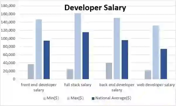 根据LinkedIn的统计数据显示,全栈开发者以平均年薪$115,658 超过前端开发、后端开发、普通网站开发,位列平均薪资第一名。